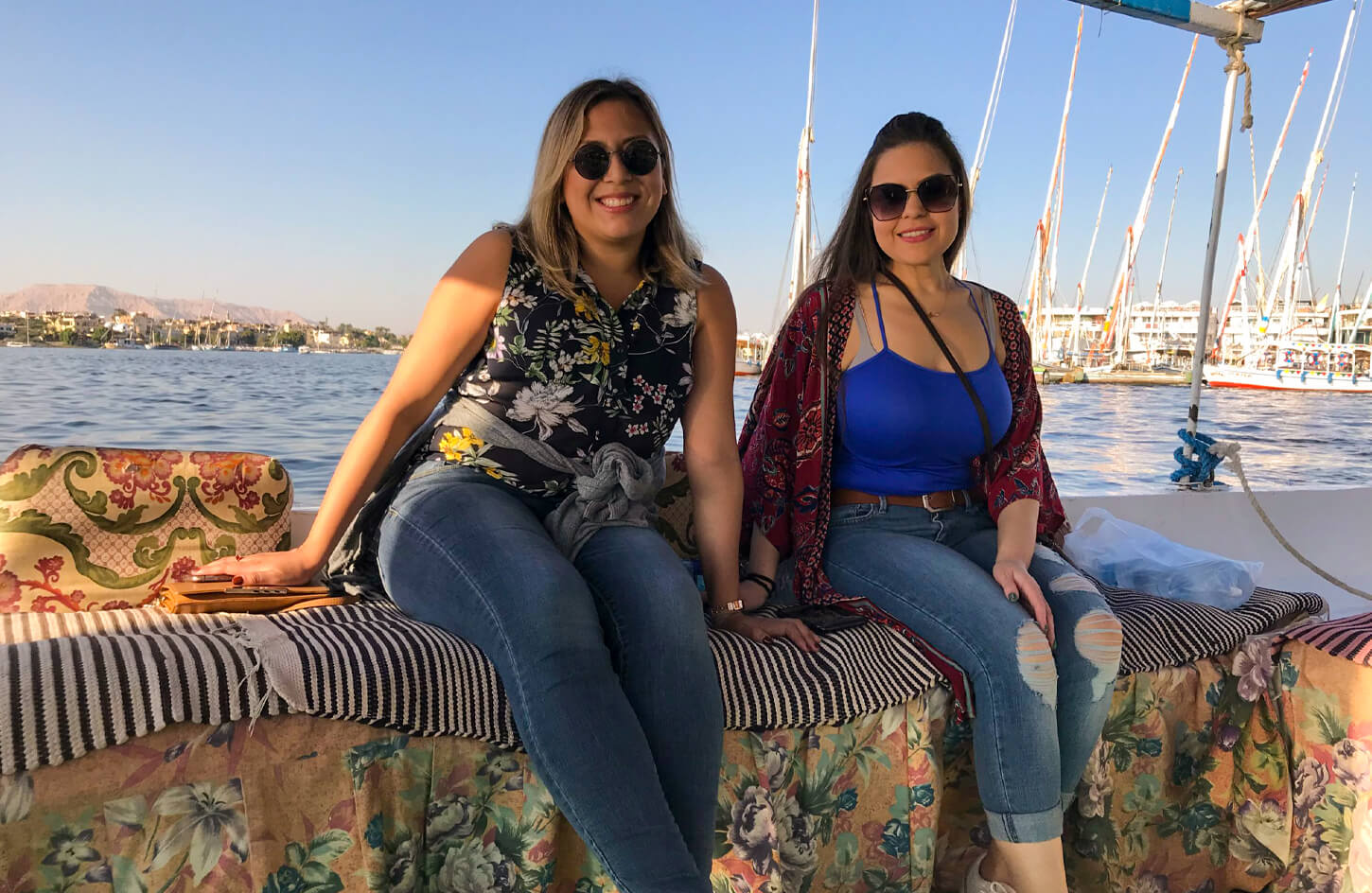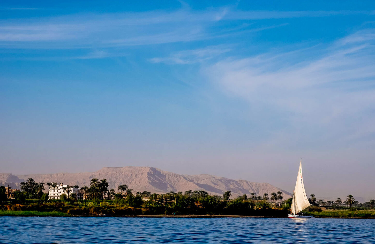 Your adventure begins with a pick-up from your Luxor hotel, followed by a short drive to the Nile’s edge. Step aboard a traditional felucca, a wooden sailboat used for centuries, and settle in on soft cushions as you embark on a gentle cruise. As you sail, admire the picturesque surroundings—children playing along the shore, farmers tending their fields, and elegant birds soaring overhead. Keep an eye out for water buffaloes wading near the riverbanks, adding to the authentic charm of the experience.